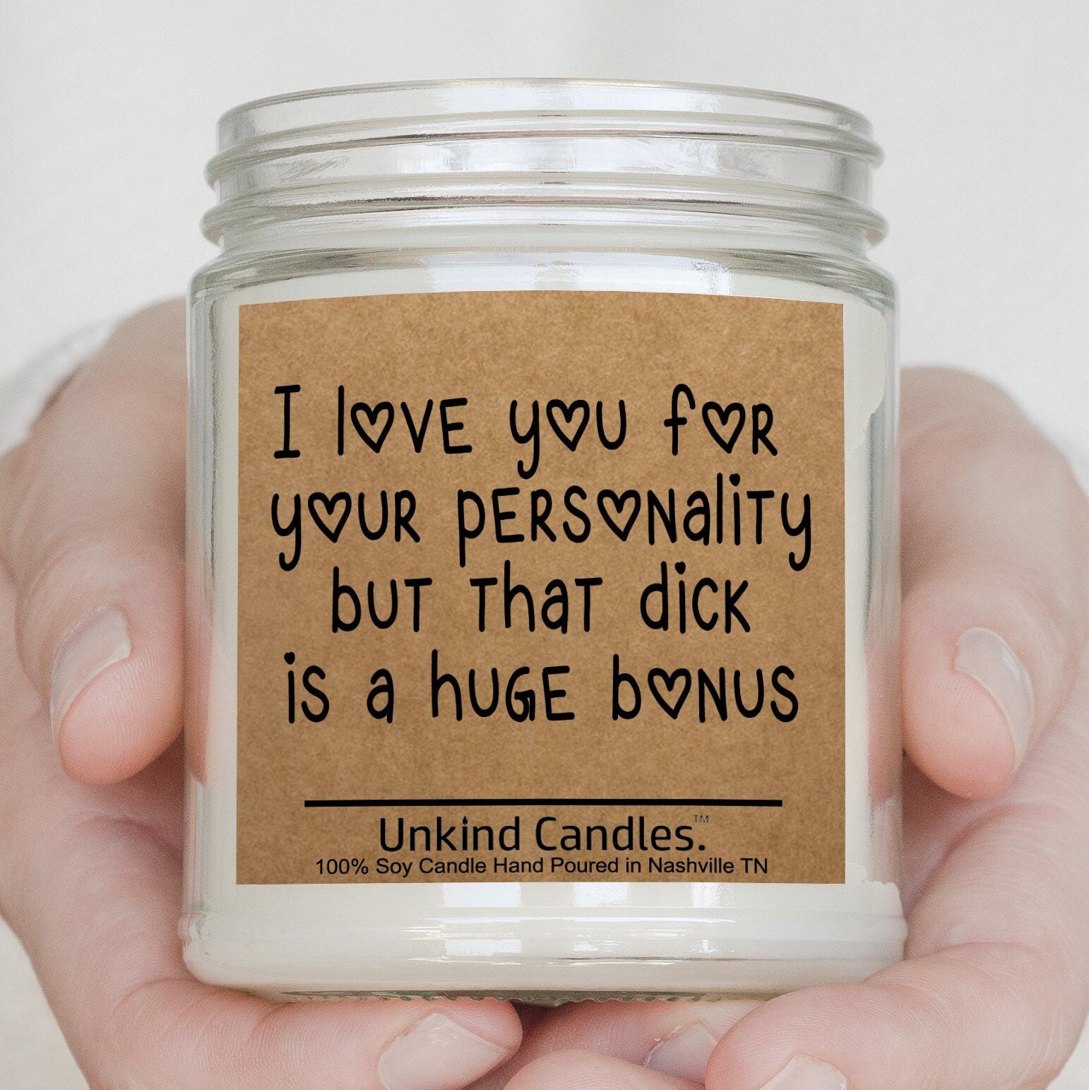 I love you for your personality but that dick is a huge bonus, Funny Handmade Soy Candle. Boyfriend gift for him, Husband, Sexy Valentines