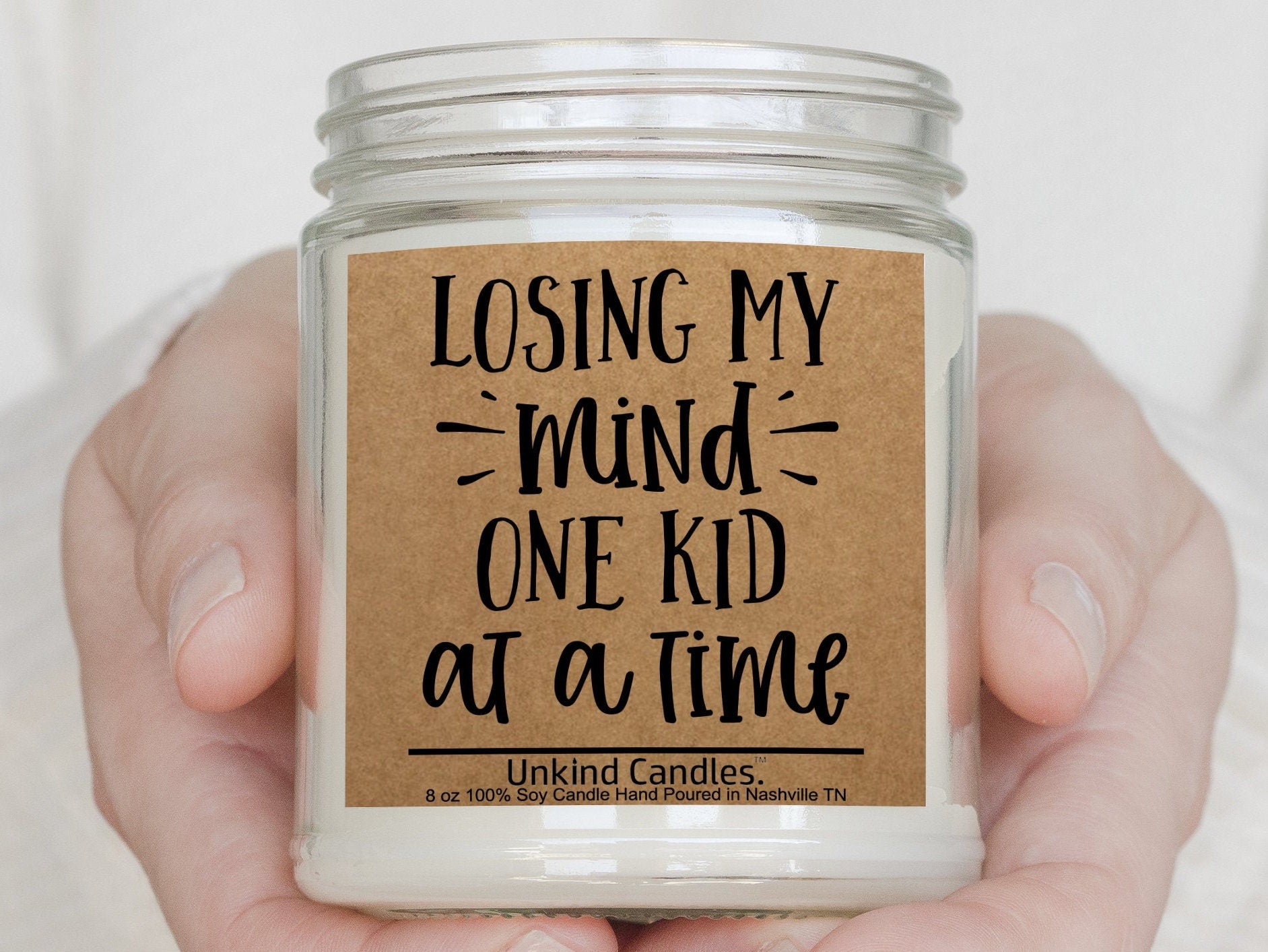 Losing My Mind One Kid at a Time, Funny Mothers Day Gift. Hand Poured Soy Candle. Young Mom, First Time Mom, Wife, Girlfriend
