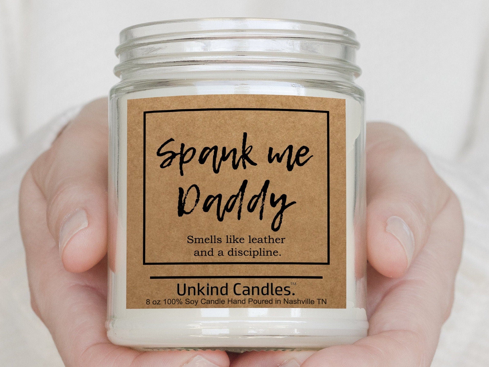 Spank Me Daddy, Funny Handmade Soy Candle. Sexy gift, Gift for him, Anniversary gift, sexy naughty, Kinky, Leather, DDLG, BDSM, Bondage